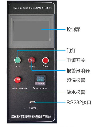 門燈:測(cè)試中若欲觀察箱內(nèi)變化狀況時(shí),開啟此開關(guān),由視窗知曉內(nèi)部變化情形。